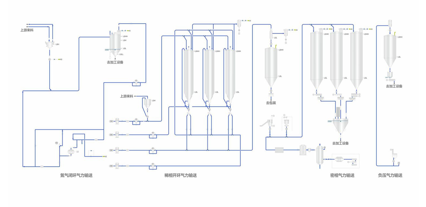 공압 이송 시스템은 다양한 가공 설비 간 분말 및 펠릿을 이송하는 데 가장 적합한 방식입니다.